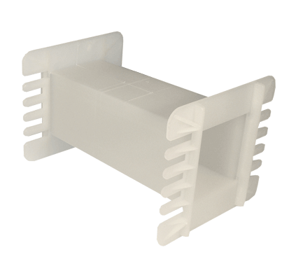 El carrete, es fabricado en Poliamida 66 reforzado con fibra de vidrio (PRYDE T37081).