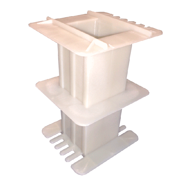 El carrete, es fabricado en Poliamida 66 reforzado con fibra de vidrio (PRYDE T63981).