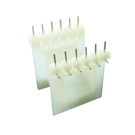 Los carretes con pines permiten su conexión a placas de circuitos impresos (PCB). Material pines: Alambre de aleación CuSn6 (Den. según CDA UNS 519) y recubierto superficialmente con Estaño Sn100.