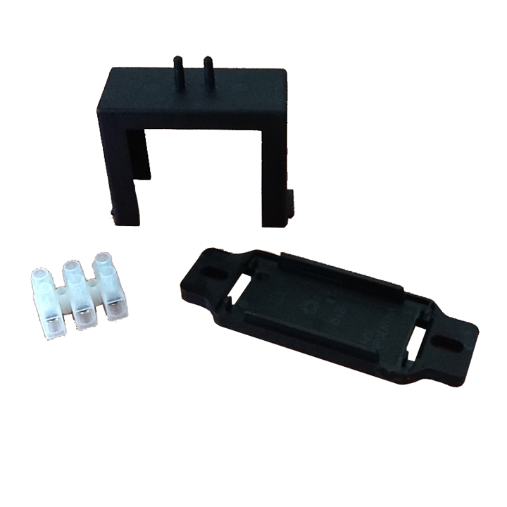 Brida con traba para montaje horizontal y pines para sujeción de bornera.