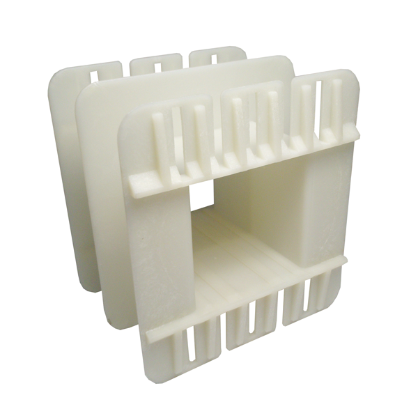 El carrete, es fabricado en Poliamida 66 reforzado con fibra de vidrio (PRYDE 330981). Otros materiales ó según diseños especiales pueden fabricarse a pedido.