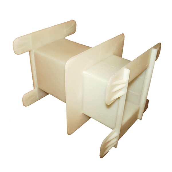 El carrete, es fabricado en Poliamida 66 reforzado con fibra de vidrio (PRYDE T59Z81).