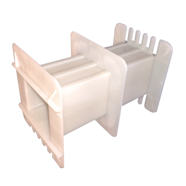 El carrete, es fabricado en Poliamida 66 reforzado con fibra de vidrio (PRYDE T63981).
