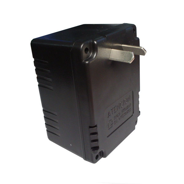 El modelo de caja CONVERTIDOR con espigas de conexión planas, para laminación EI62(16), dispone de una salida pasacable en la misma envoltura plástica.