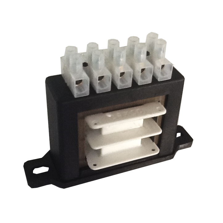 Permite montar en la parte superior de la traba una bornera de conexión compatible con bornera TEKOX 1106 de 5 polos.